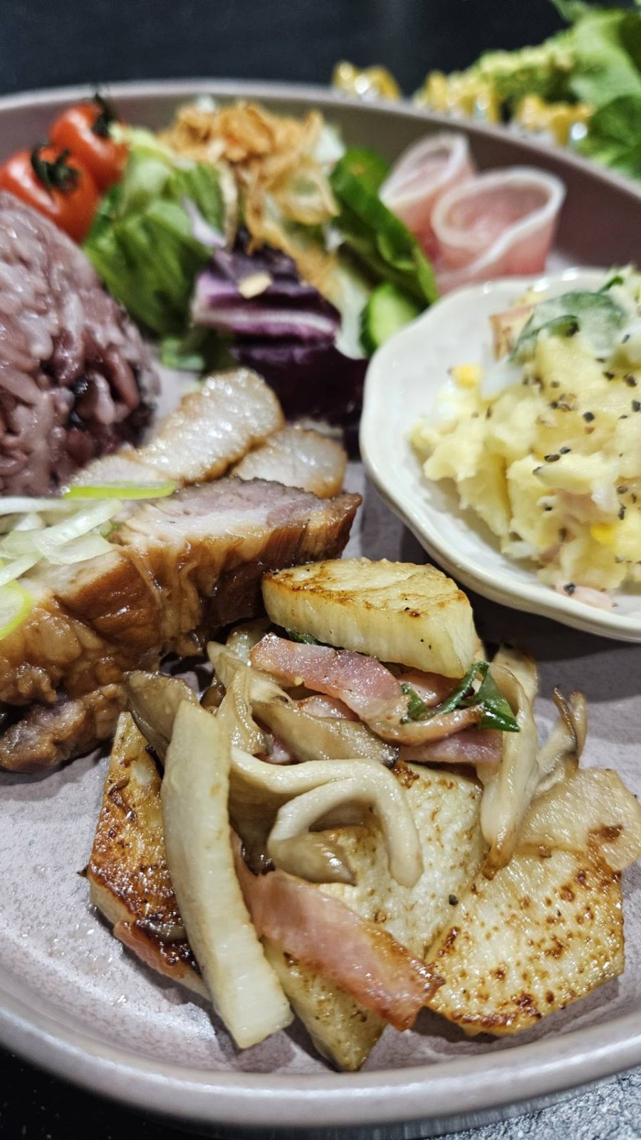 先日、M家からいただいたじゃがいもと長芋でワンプレートご飯を作りました。いつも色々といただきありがとうございます。