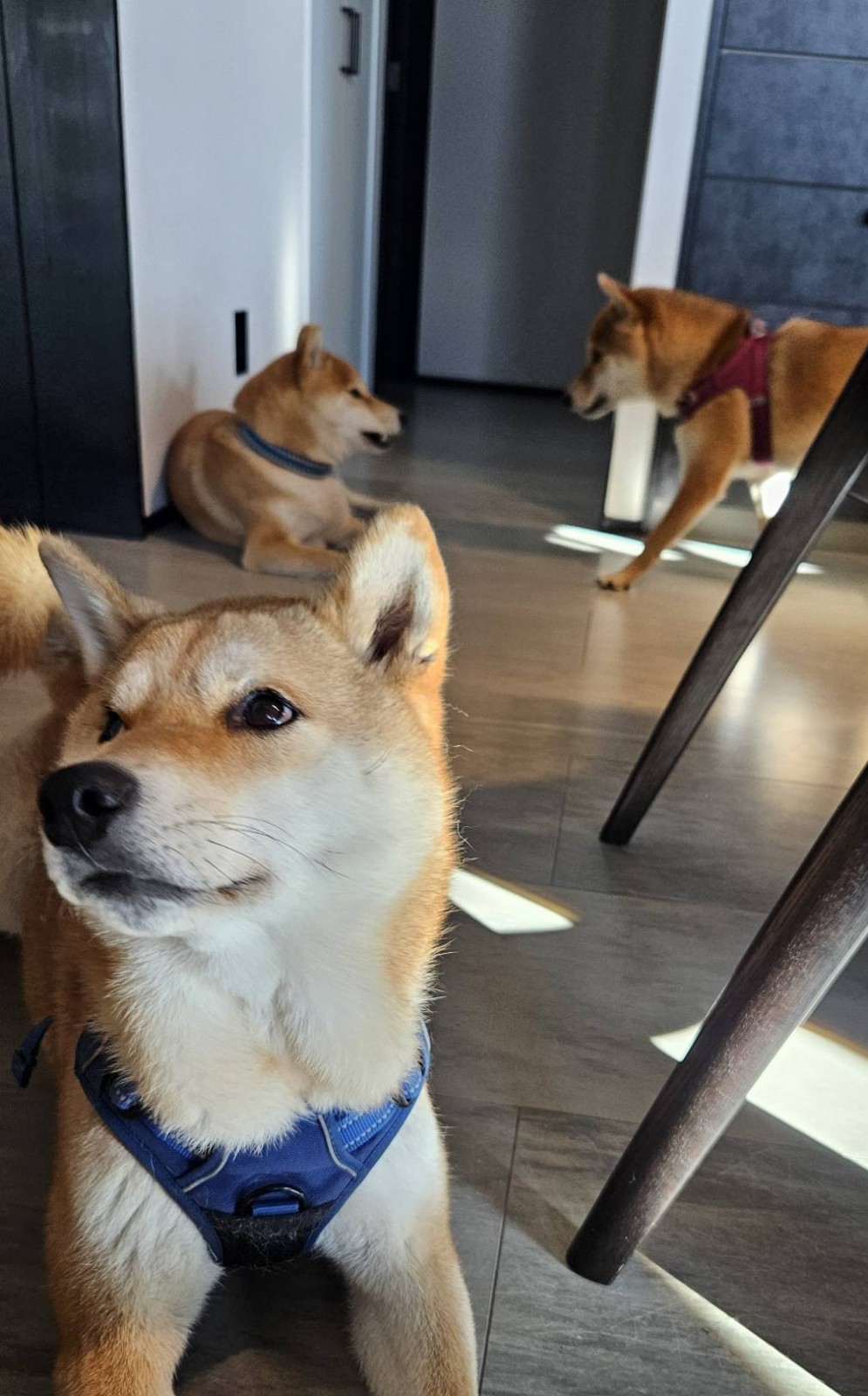 写真のように、うちのワンコたちも興味津々(笑)