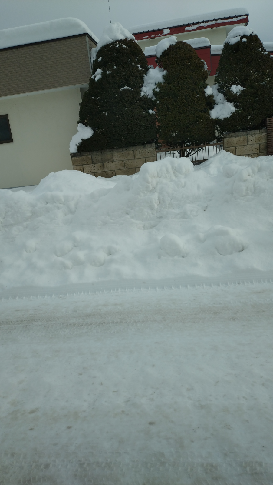 除雪車で積まれた雪が壁となって通り抜けられず、右往左往していました((+_+))