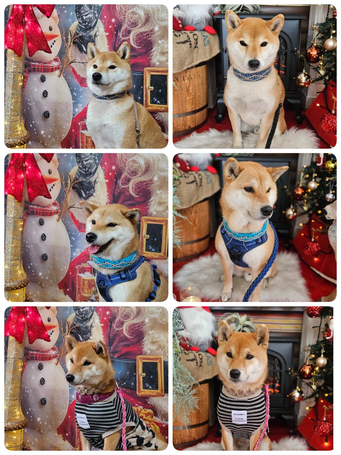 そんな特別な日に、リフォームのサトラの看板犬である虎虎虎3兄妹も、可愛いクリスマスフォトブースで記念撮影をしました!赤やゴールドのオーナメント、暖炉をイメージした背景、ふわふわのラグに囲まれて、ちょこんとお座りする姿は、まさに「癒しそのもの」。それぞれ表情も個性も違って、キリッとした顔、ちょっと得意げな顔、思わず笑ってしまうような無邪気な表情まで…