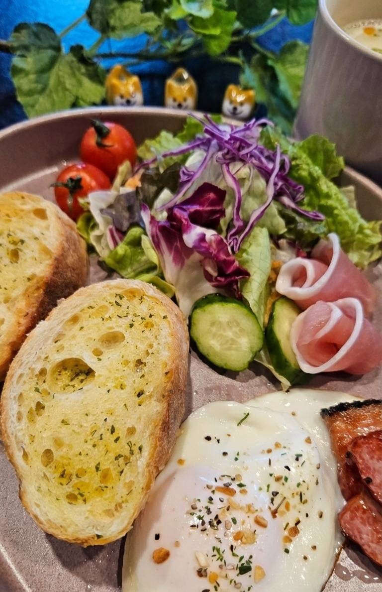 小皿にバラバラに出すと「あ、これだけ?」なんて思われがちなメニューも、大きなお皿にギュッと寄せ集めるだけで、なんだか「カフェのご飯」や「ホテルの朝食」のような雰囲気を纏うんですよね。