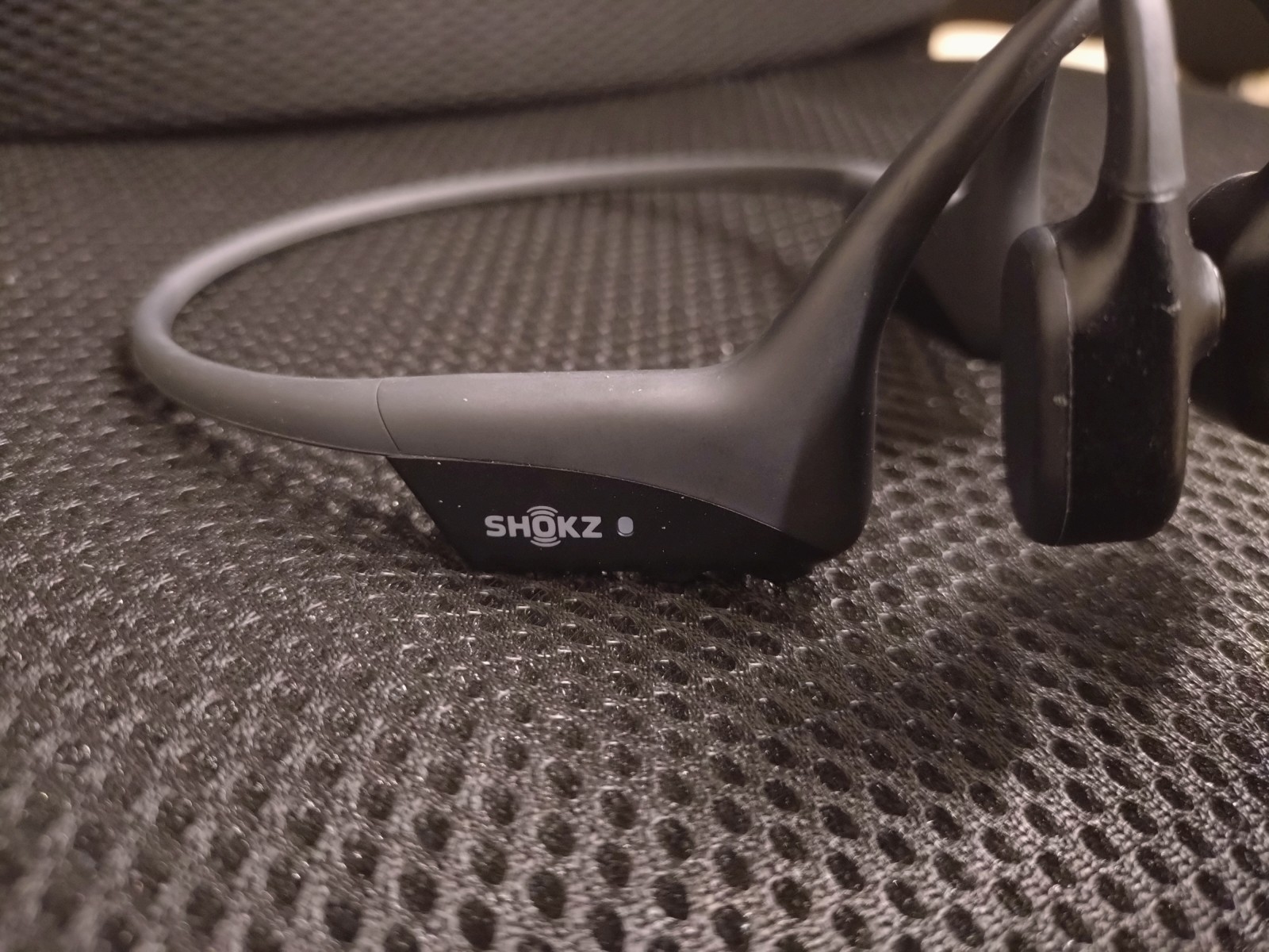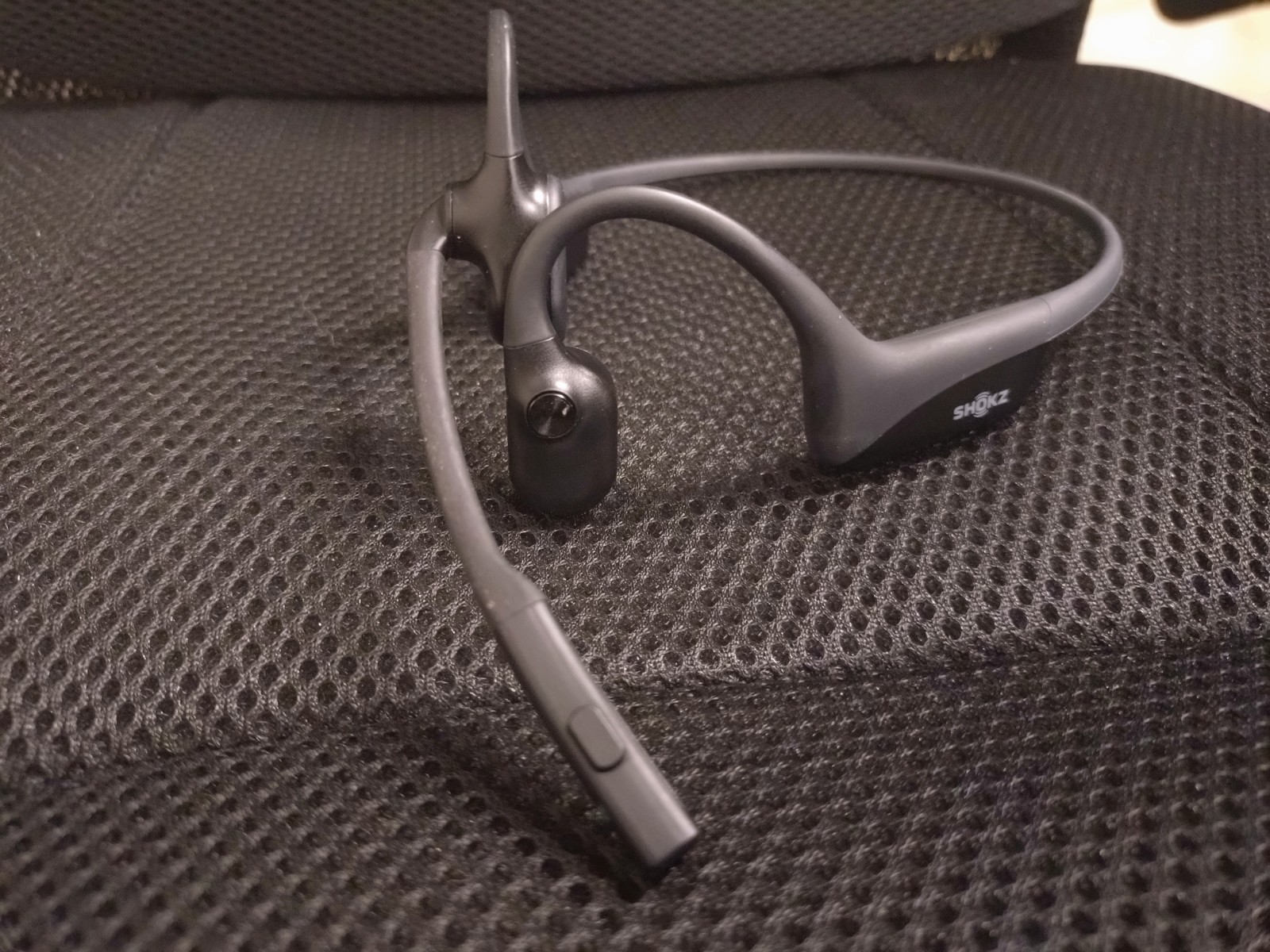 骨伝導型のハンズフリーイヤホンを使用しております。