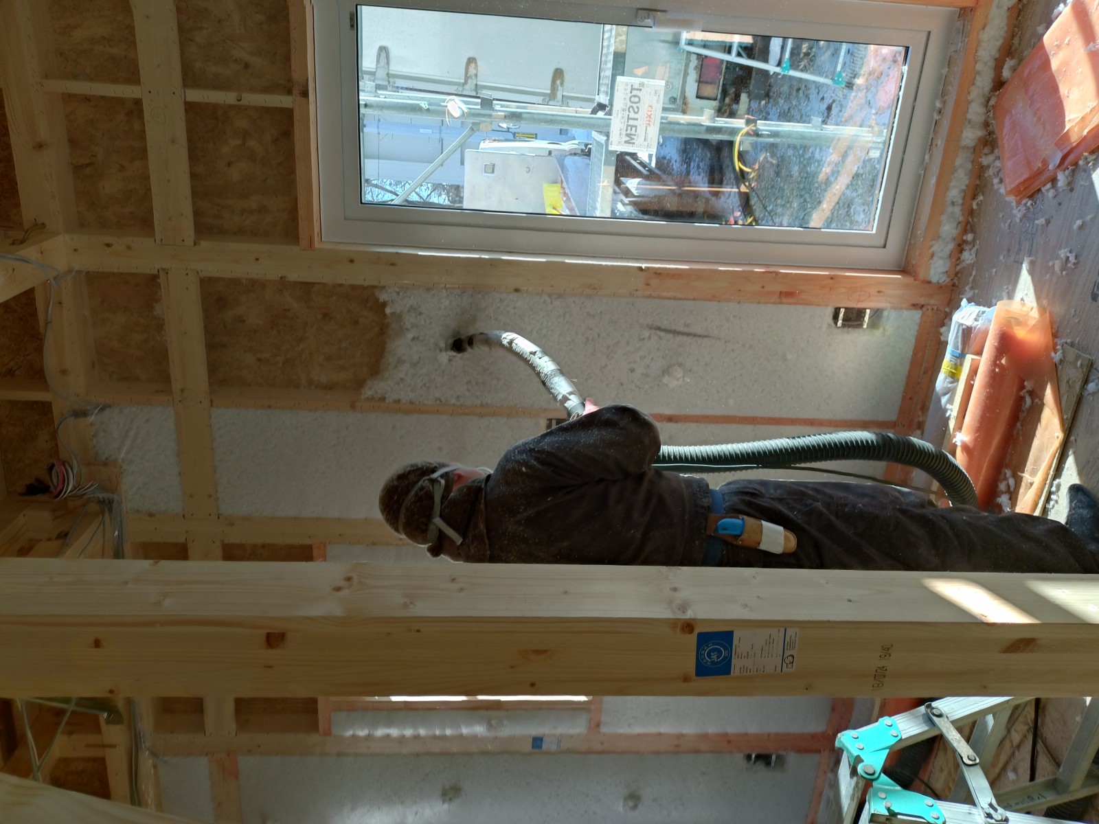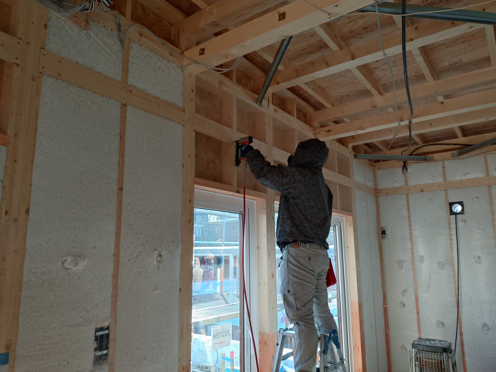 本日は、現在進行中になります、O様邸の断熱材吹込みをしております!
