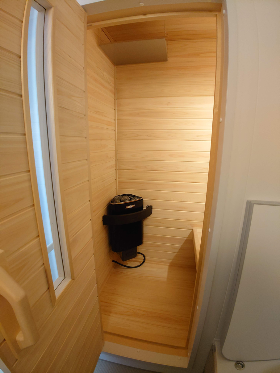 脱衣室から見ると 浴室内から見ると サウナ室の扉を開けて見ると 入り口から覗くと ヒノキの良い匂いがします♬「元気ですか!」それは猪木です ヒーターはもちろんハルビアです 全国1126万人のサトラファン皆様、1126「いい風呂」好きのみなさなこんにちは! 現在2現場でサトラウナの工事をしており、1つが完成いたしました♬ お好きな時間にお好きなだけ、リビングから30秒で入れるサウナをご堪能ください♬ サトラウナ最高です~ この記事をシェア X LINE Facebook 共有 リンクをコピー URDATE 2026-03-14 VIEWS 8