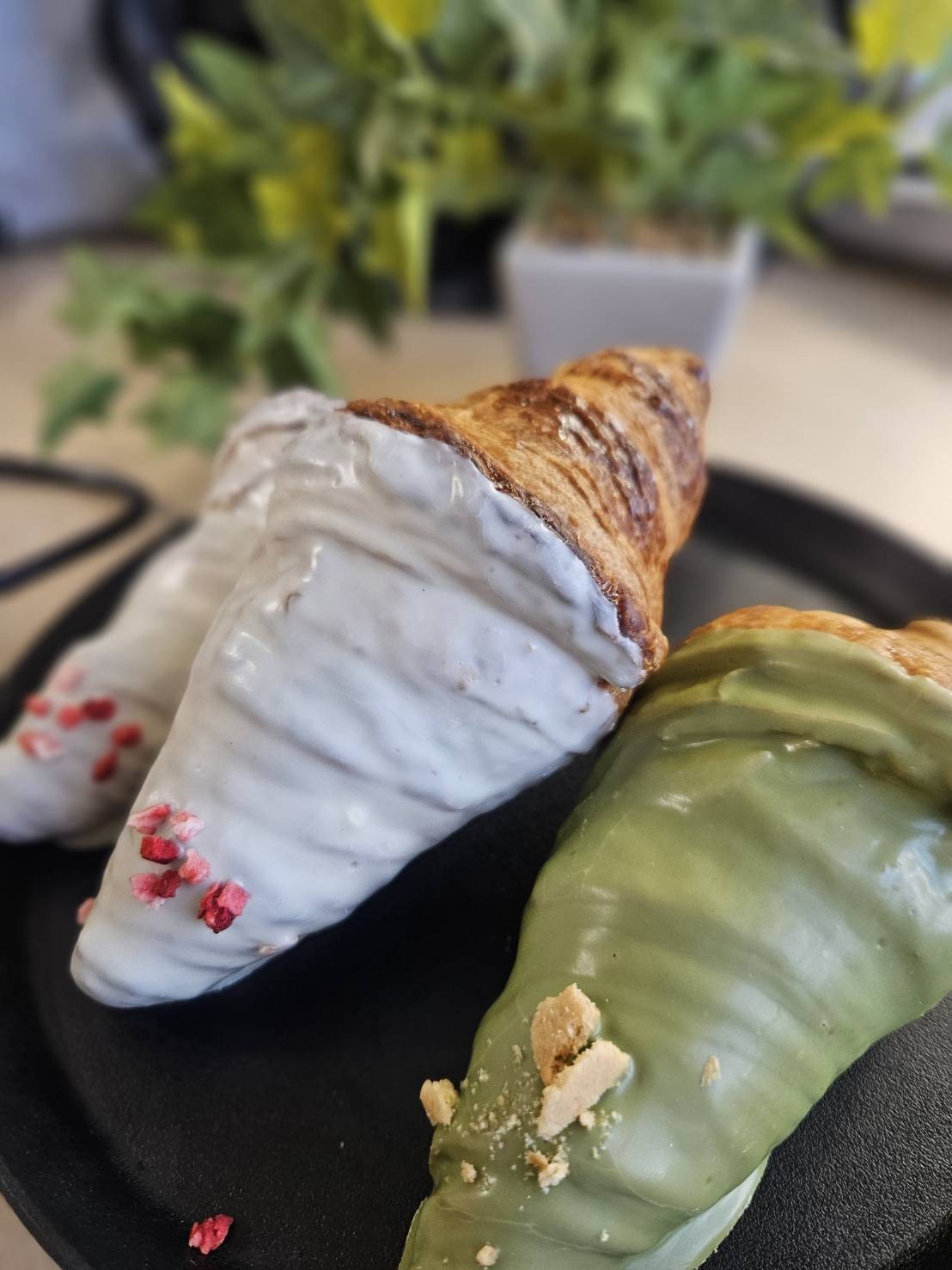 サクサクのクロワッサン生地に、ホワイトチョコや抹茶チョコがコーティングされていて見た目も華やか。