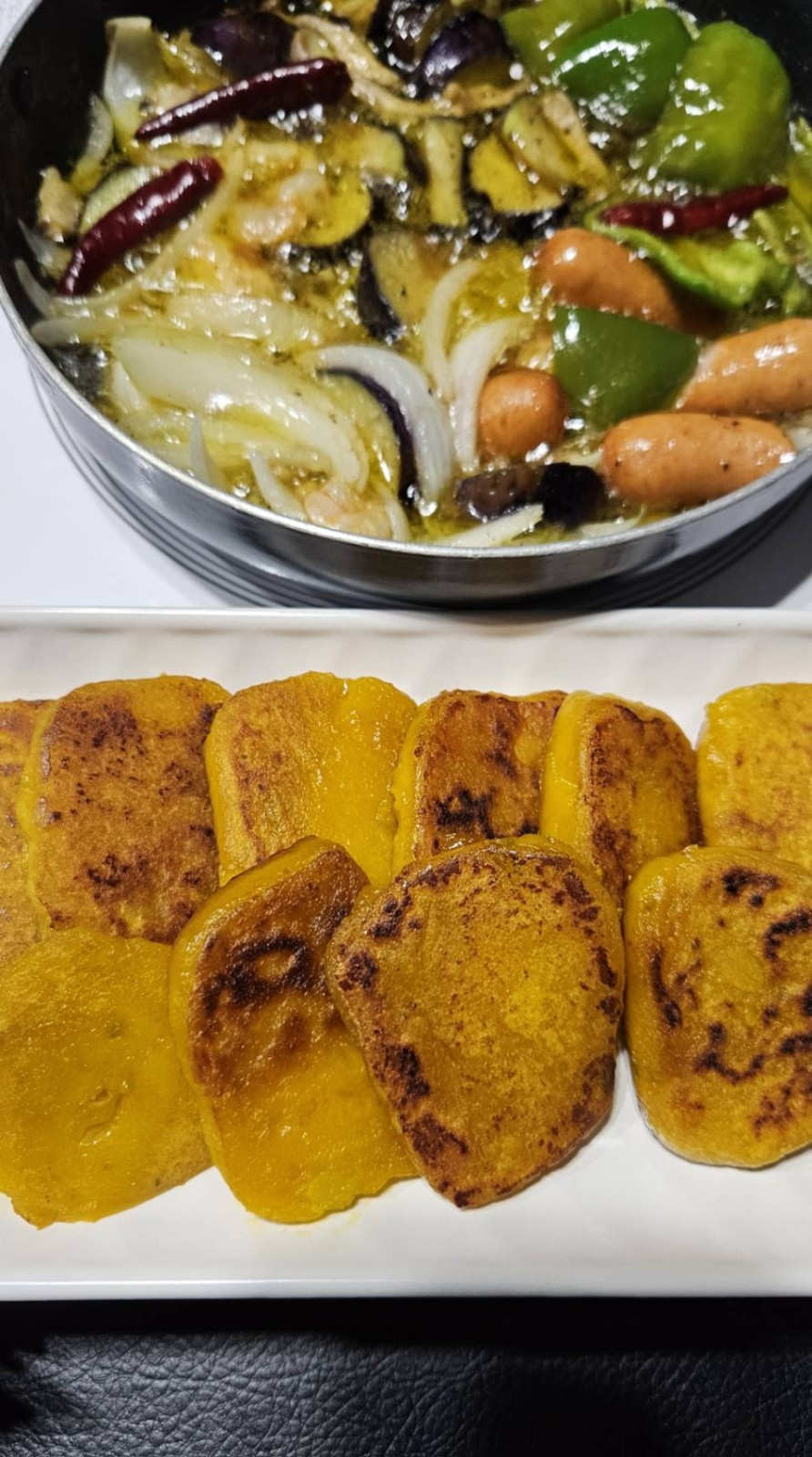 昨日の夜ご飯は、頂いたお野菜とお隣のリクママ手作りかぼちゃ団子。