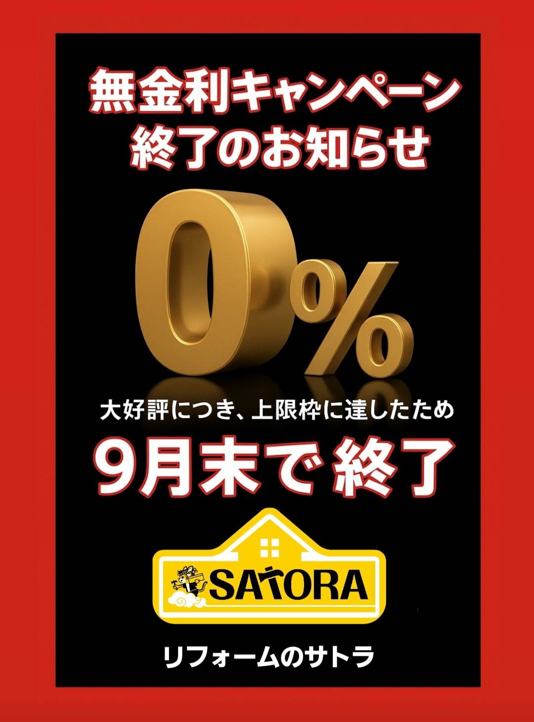 施工依頼の殺到、そしてリフォームローンお申込みの殺到につき上限枠に達したため、誠に勝手ながら「リフォームローン無金利キャンペーン」を