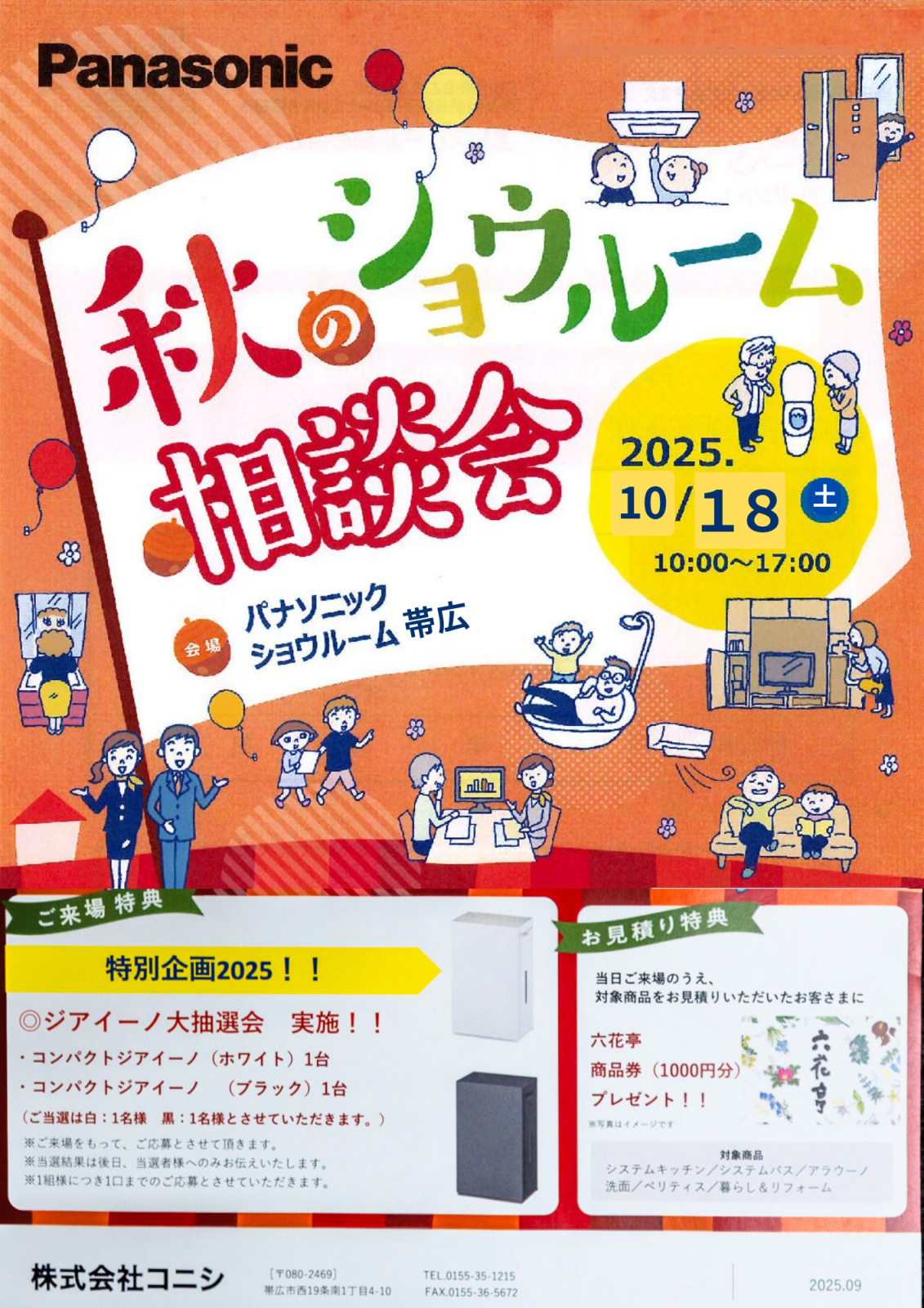 2025年10月18日(土) 10:00~17:00 @Panasonicショウルーム帯広