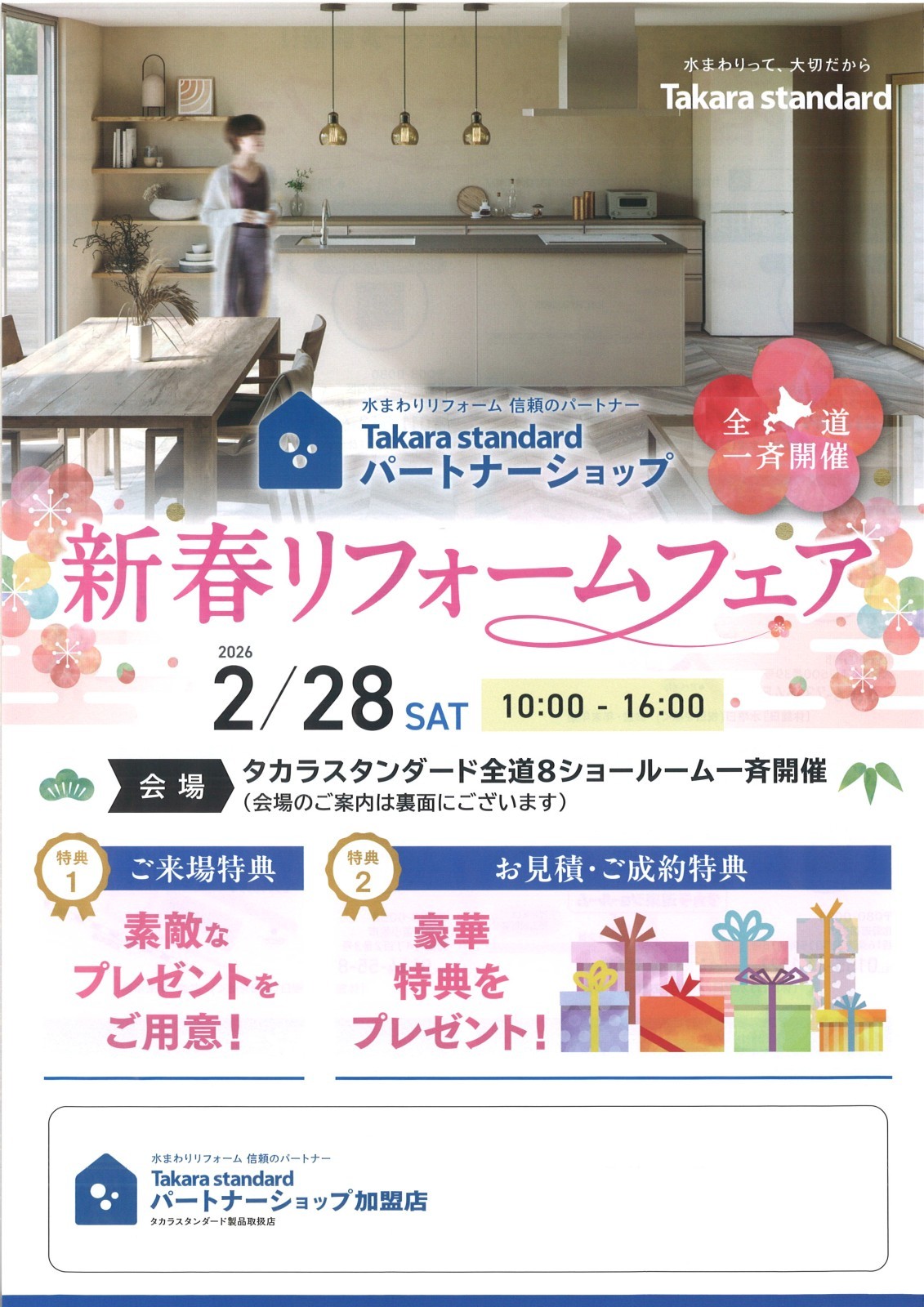 会場はいずれもタカラ道東ショールーム(帯広市西16条南2丁目15-15 TEL0155-41-1121)