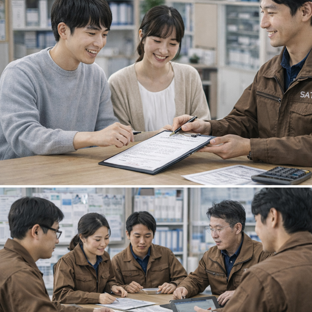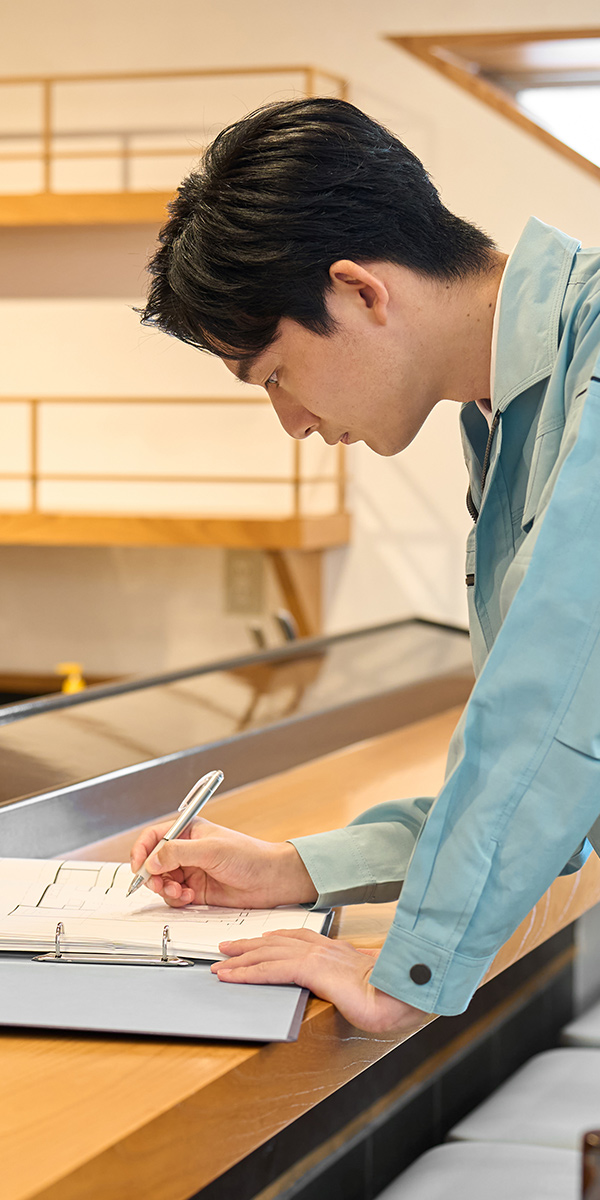 工事完了後は、最終確認を行い、書類や保証内容についてご説明したうえでお引き渡しとなります。 その後も、定期点検やメンテナンスなど、長く安心して暮らしていただくためのサポートを続けます。