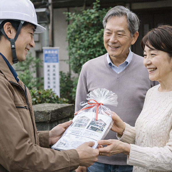 着工前には、近隣の方へ工事内容や期間をご説明します。